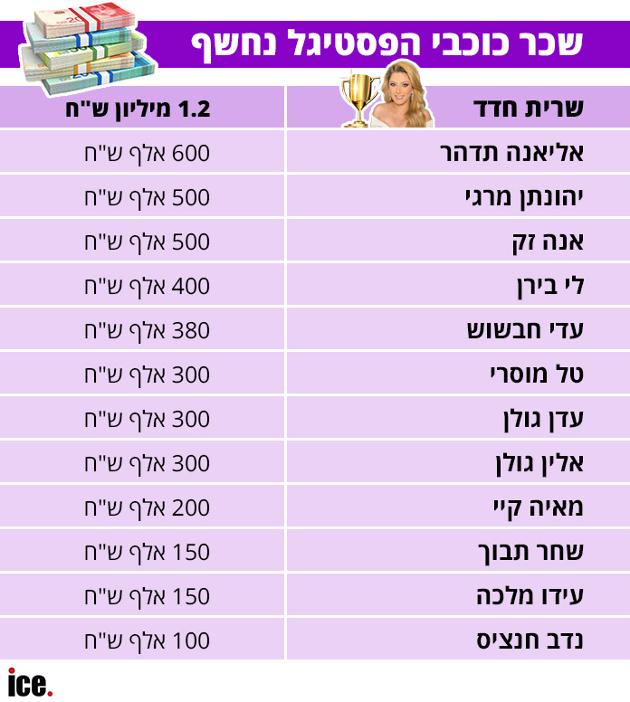 שכר כוכבי הפסטיגל נחשף: אליאנה ולי-בירן מול מרגי וזק, שרית חדד בצמרת