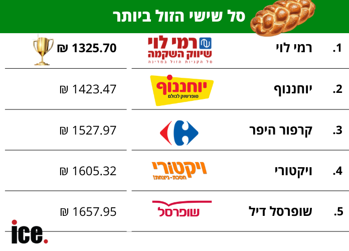 כמדי שבוע אנו בודקים ומשווים איפה רשת המזון הזולה יותר לרכישת סל שישי שמרכב בתוכו מוצרים רבים ויקרים. זו הרשת הזולה השבוע