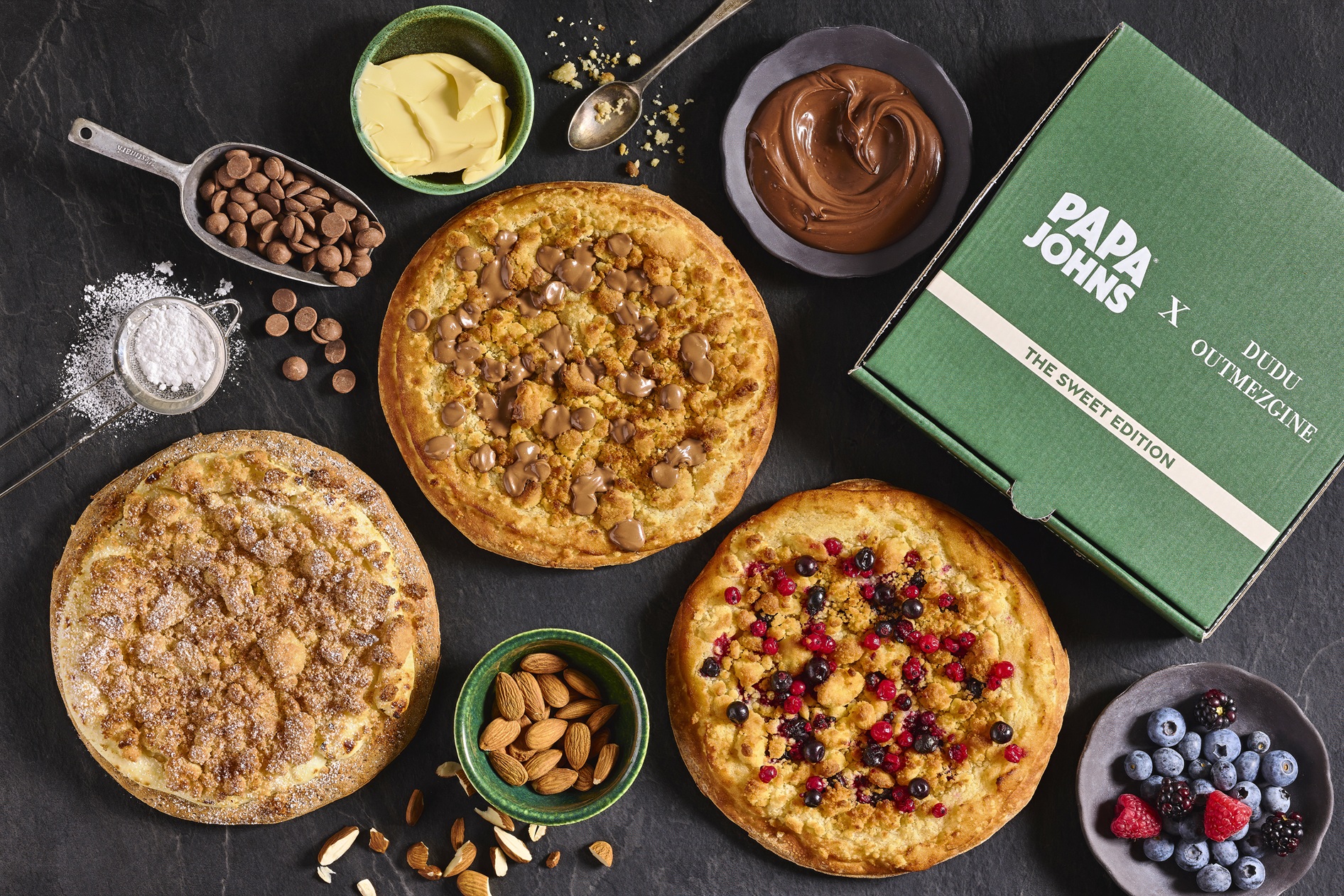 רשת הפיצריות פאפא ג’ונס והשף־פטיסרי דודו אוטמזגין יוצאים בשיתוף פעולה קולינרי חדש תחת השם “The Sweet Edition” , מהדורה מוגבלת של שלושה קינוחים, המשלבת בין עולם הפטיסרי לבין בצק הפיצה של הרשת. מדובר במהלך חריג בנוף של רשתות מזון מהיר, המבקש לחבר בין טכניקות מעולם הקינוחים הקלאסי לבין פורמט מוכר ונגיש לצרכן הרחב.