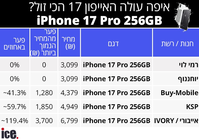 פערי המחירים בין הרשתות עבור iPhone 17 Pro 256GB מראים עד כמה הבחירה במקום הרכישה חשובה. רכישה חכמה ומושכלת יכולה לחסוך אלפי שקלים בלי להתפשר על איכות, שירות או אחריות. כל שקל קובע, ובשוק של אפל, בדיקה קצרה ומודעת יכולה להיות ההבדל בין עסקה משתלמת להוצאה מיותרת.