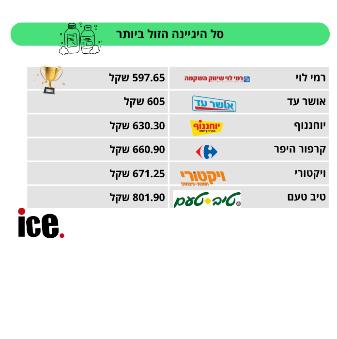 כמדי שבוע אנו בודקים ומשווים איזה רשת מזון היא הרשת הזולה ביותר. בבדיקה השבועית בדקנו איפה סל ההייגינה האישי הזול ביותר?
