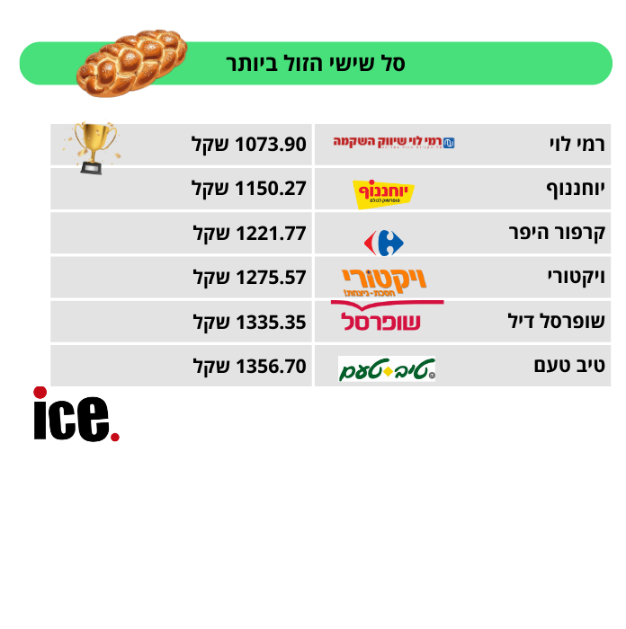 כמדי שבוע אנו בודקים ומשווים איפה סל ארוחת שישי הוא המשתלם ביותר, מאחר ומדובר בסל עם מוצרים יקרים. התוצאות לפניכם