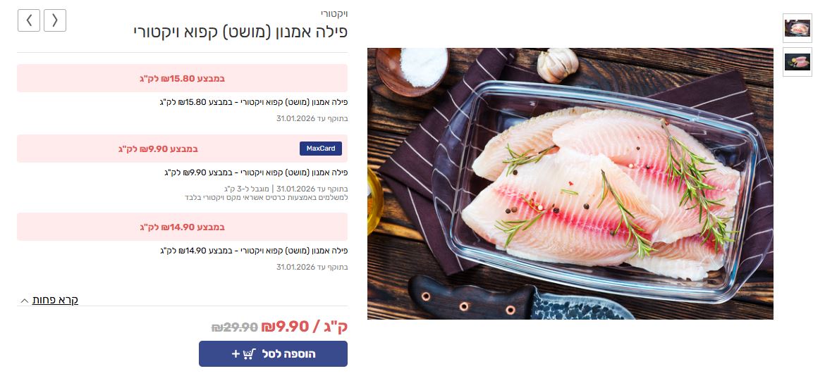כאמור, בתחילת החודש הכריז המנכ"ל אייל רביד על המבצע החדש של הרשת במחלקת הדגים: "דגים במחירים שלא תמצאו בשום מקום אחר מחכים לכם עכשיו בסניפים. המבצעים בתוקף בין התאריכים: 5-9.1.26 בלבד או עד גמר המלאי". כך למשל, הלקוחות יכלו לרכוש דג לברק שלם בעלות של 69.80 שקלים לק"ג ובאותו המחיר יכלו לקנות דג דניס טרי שלם ב-69.80 שקלים לק"ג.