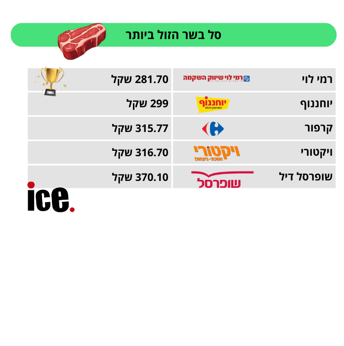 לסיכום, הנתונים מבהירים שוב כי הבדל של כמעט 90 שקלים בין הסל הזול ליקר הוא פער לא מבוטל, וכי בחירה מושכלת ברשת המזון יכולה להוביל לחיסכון ממשי בכסף – במיוחד כשמדובר במוצרים יקרים כמו בשר.