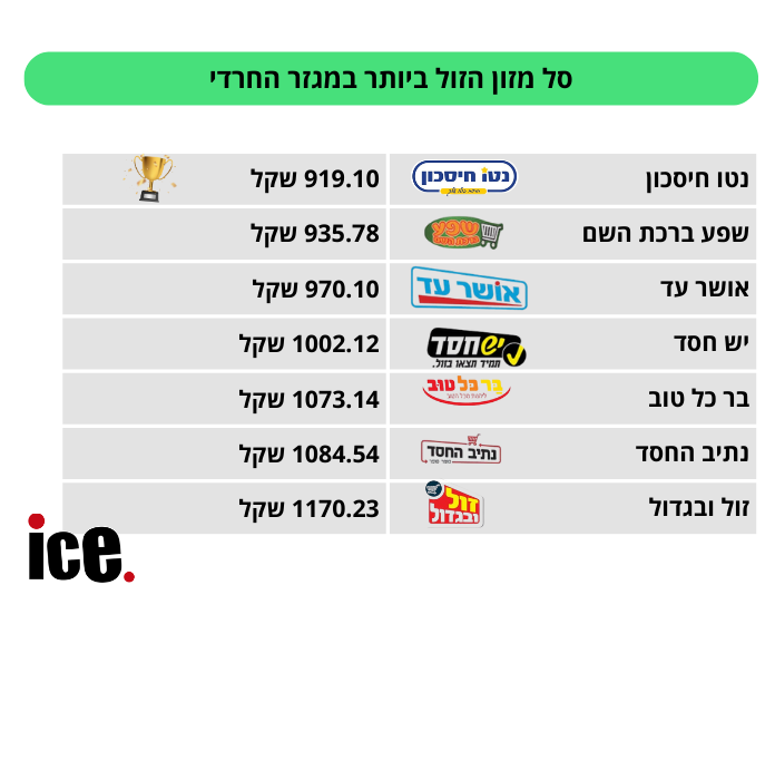 המגזר החרדי, המוכר זה שנים כמוביל בתחום מחירי המזון הנמוכים, ממשיך להציע מלאי רחב ומגוון לא רק לציבור החרדי, אלא לכלל האוכלוסיות בישראל. רשתות המזון הפועלות במגזר מציעות מוצרים בסיסיים, מותגים מובילים וגם מוצרים ייעודיים, במחירים תחרותיים שמושכים קהלים רבים מחוץ למגזר.