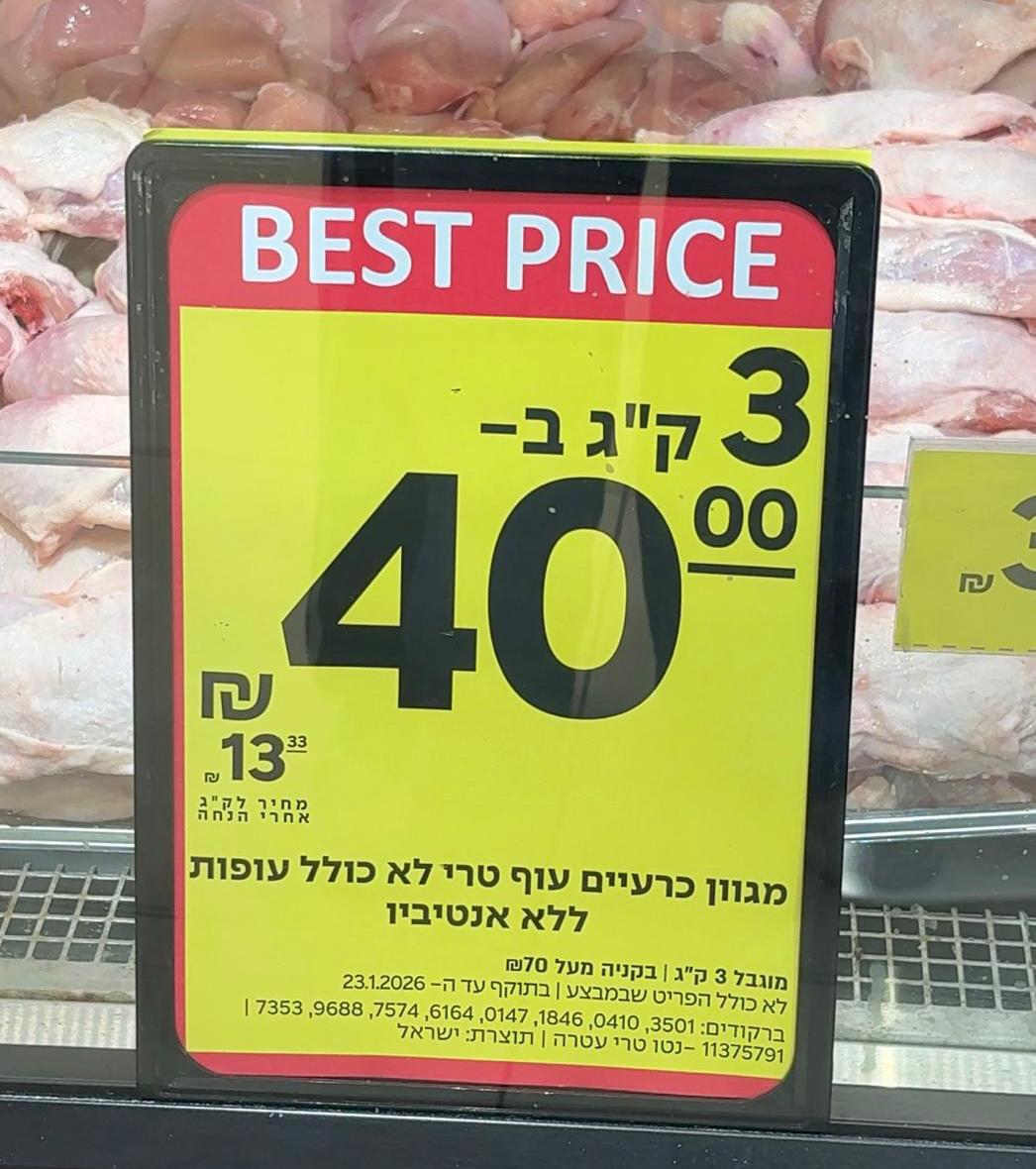 במרכז המהלך עומד מבצע על 3 ק״ג כרעיים עוף טרי במחיר של 40 שקלים בלבד, מוגבל למימוש אחד ללקוח ובכפוף לקנייה מעל 70 שקלים. לצד מבצע העוף, מציעה קרפור שורת מבצעי פירות במחיר אחיד של 10 שקלים, בהם תות שדה ב-10 שקלים למארז, אננס ב-10 שקלים ליחידה ואוכמניות ב-10 שקלים למארז, כאשר כל אחד מהמוצרים מוגבל לעד 3 יחידות ללקוח.