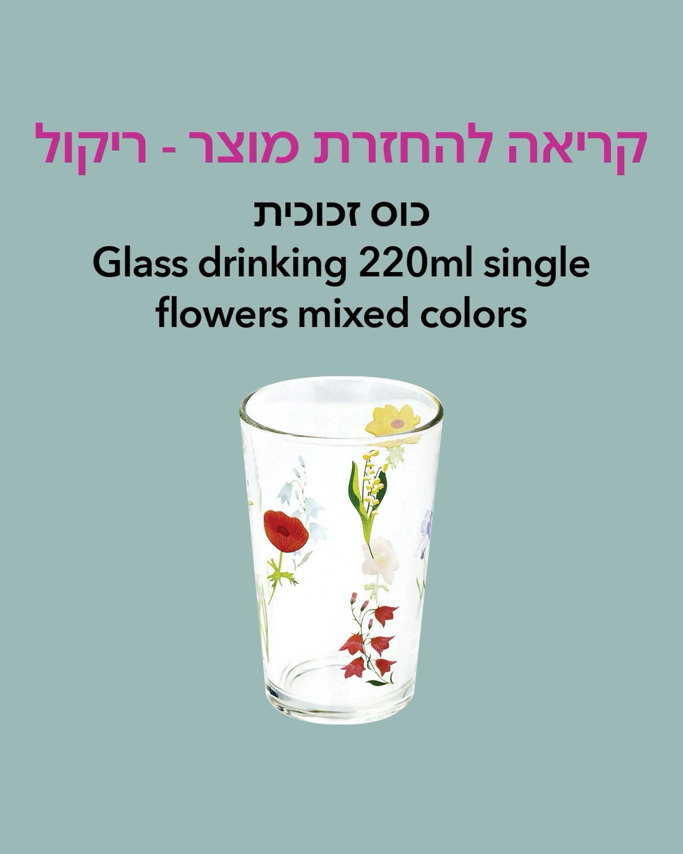 הממונה על התקינה במשרד הכלכלה והתעשיה עדכן היום על קריאה להחזרת מוצר בחנויות רשת Flying Tiger Copenhagen בישראל. חברת פוקס ויזל בע"מ, נציגת הרשת, קוראת לציבור להפסיק את השימוש באופן מיידי בכוס זכוכית מסוג "GLASS DRINKING 220ML SINGLE FLOWERS MIXED COLORS".