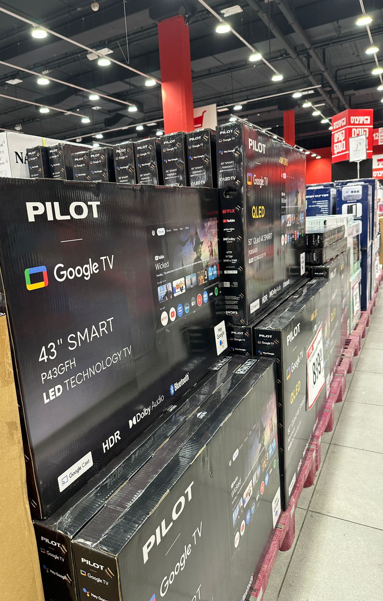 רשת הקמעונאות יוצאת במבצע שובר שוק על מסכי Pilot עם GoogleTV ו-4K בעשרות אחוזי הנחה, החל מ-499 ש"ח, לצד הנחות על מקררי יין. המהלך מגיע על רקע התחרות הגוברת בשוק החשמל