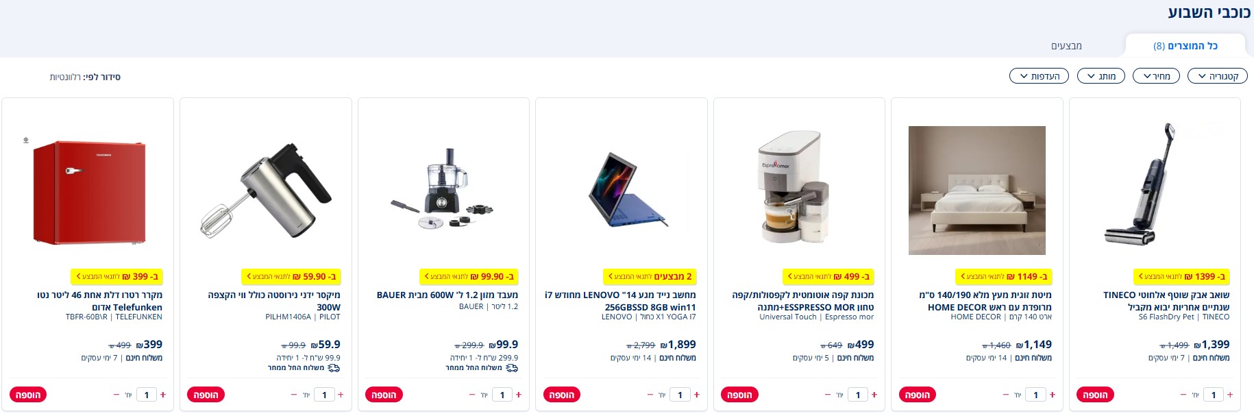 הקמעונאית הישראלית מציעה למכירה מוצרי חשמל בעלויות נמוכות מהרגיל, זאת במסגרת מבצע חדש שיפוג ב-25 בפברואר. בין מוצרי החשמל שנכללים במבצע: מקרר, מחשב נייד ושואב אבק