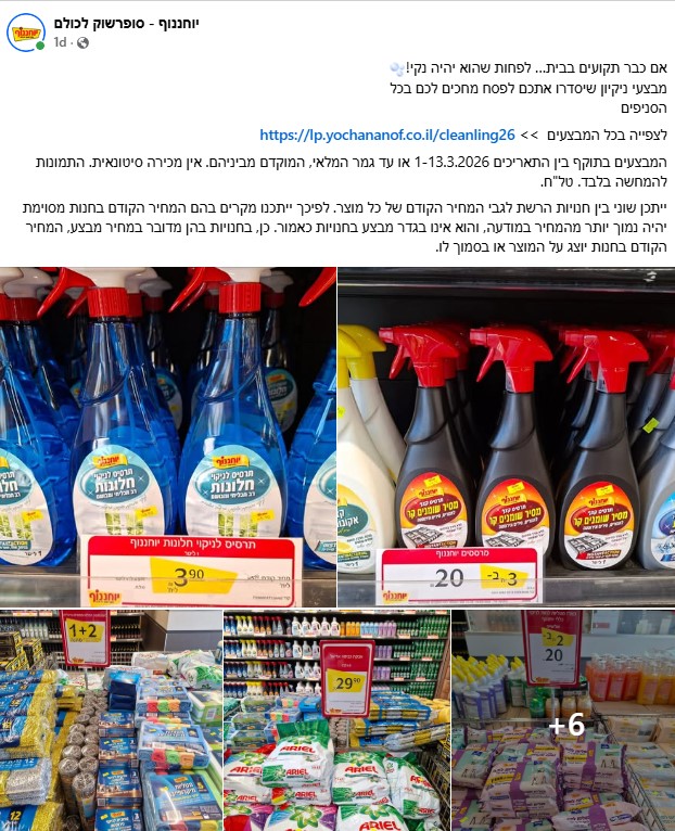 ברקע מבצע "שאגת הארי" ולרגל חג הפסח, רשת השיווק "יוחננוף" מכריזה על חגיגות מבצעים על מוצרי הניקיון הנמכרים בסניפי הרשת ברחבי הארץ. חשוב לציין, המבצעים של רשת "יוחננוף" יהיו בתוקף בין התאריכים 1-13.3.2026 או עד גמר המלאי, המוקדם מביניהם.
