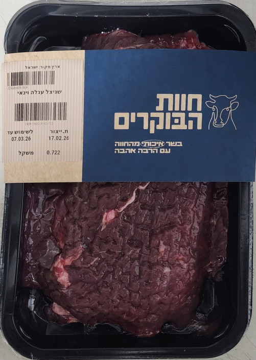 ריקול למוצר "שניצל עגלה וינאי טרי" של "חוות הבוקרים" (צילום: חברת "אג"ש מלכה מרכז הבשר בע"מ")