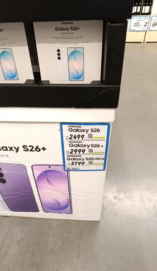 הרשת תציע למכירה את דגם הבסיס, סמסונג גלקסי S26, ב-2,499 שקלים בלבד. מי שיחפש מסך גדול יותר יוכל לרכוש את דגם ה-S26 פלוס ב-2,999 שקלים, ואילו מכשיר הדגל העוצמתי, ה-S26 אולטרה, יעלה 3,799 שקלים.
