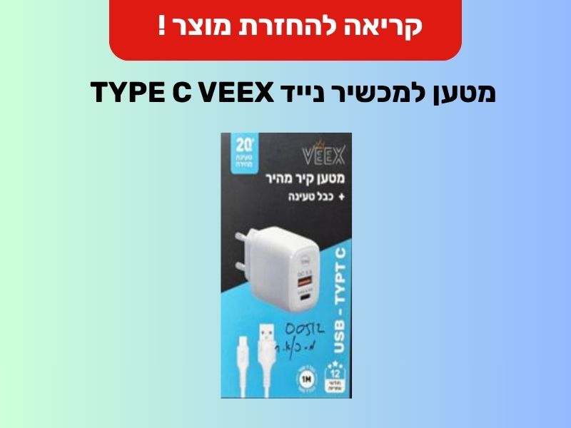 מכון התקנים מזהיר כי המטען למכשיר נייד VEEX TYPE C מסוכן ועלול להתחשמלות ולשריפה – כל המחזיקים במוצר מתבקשים להפסיק את השימוש ולהגיע להחלפה או תיקון במיידי