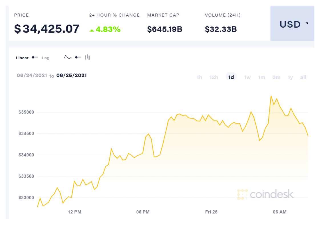 ומה עם הביטקוין? אחרי ירידה קלה אמש, המטבע הדיגיטלי הבכיר עלה ב-4.83% לשער של 34,425.07 דולר בלבד ליחידה, שווי השוק שלו גם עלה באופן ניכר לרמה של 645.19 מיליארד דולר.