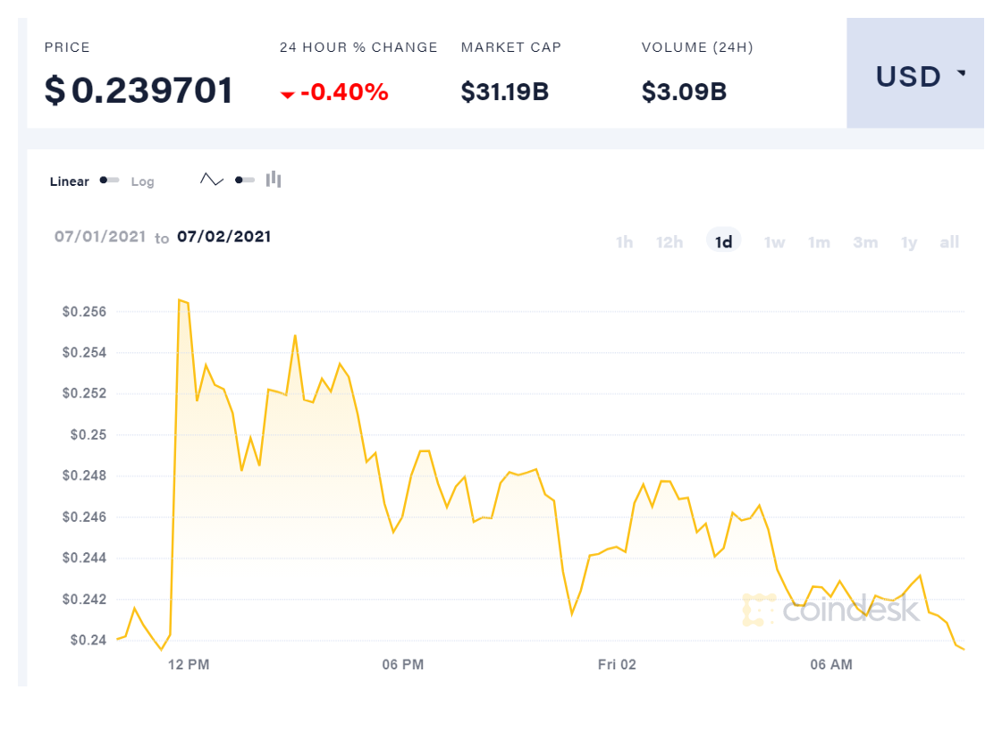 הדוג'קוין לעומתם חווה שוב את הפגיעה הקטנה ביותר, כאשר ערכו פחת ב-0.40% בלבד לרמה של 0.239 דולר בלבד, גם שווי השוק שלו ירד קלות לרמה של 31.19 מיליארד דולר בלבד. ועדיין, נראה כי הוא היציב ביותר בימים האחרונים.