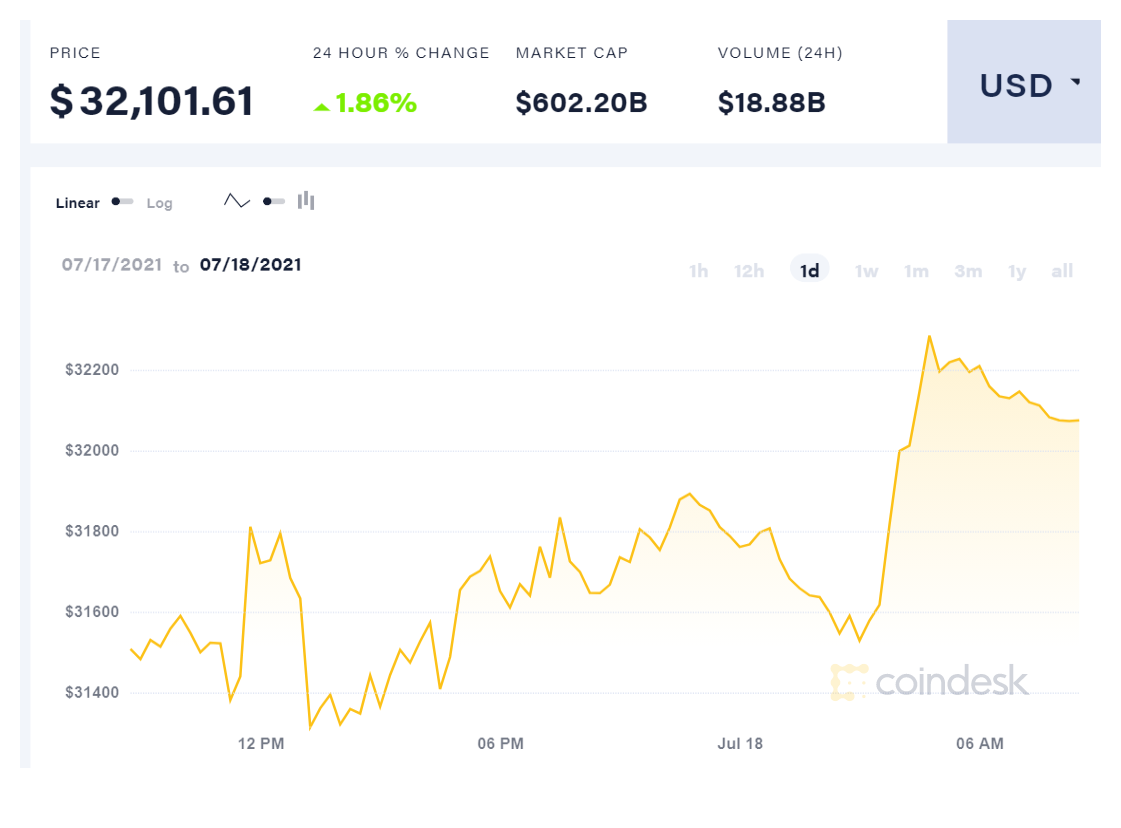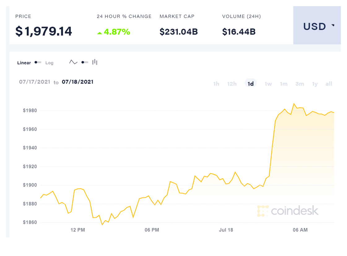 אחרי שמאסק סידר למטבע הצנוע עלייה של למעלה מ-10%, שני המטבעות הבכירים יותר קפצו גם הם, כאשר הביטקוין עלה ב-1.86% ל-32,101 דולר והקריפטו השני בחשיבותו טיפס ב-4.87% ל-1,979 דולר
