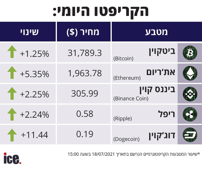הקריפטו היומי: האת'ריום עולה ביותר מ-5%, הדוג'קוין התפוצץ
