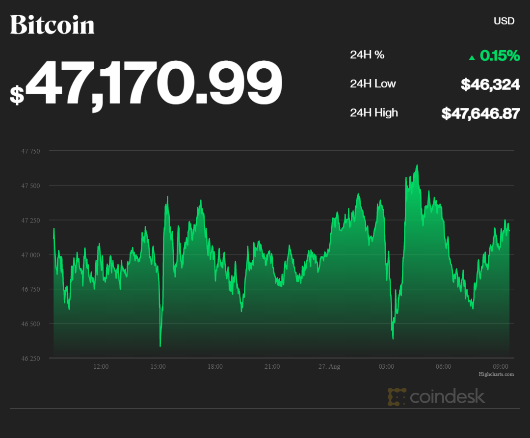 הביטקוין רשם עלייה של 0.15% בדרך לשער חדש של 47,170.99 דולר, כאשר המטבע הדיגיטלי הבכיר הגיע לשווי שוק חדש של 885 מיליארד דולר בסך הכל, אבל עדיין הוא מתקשה לחזור לרף 50 אלף דולר.