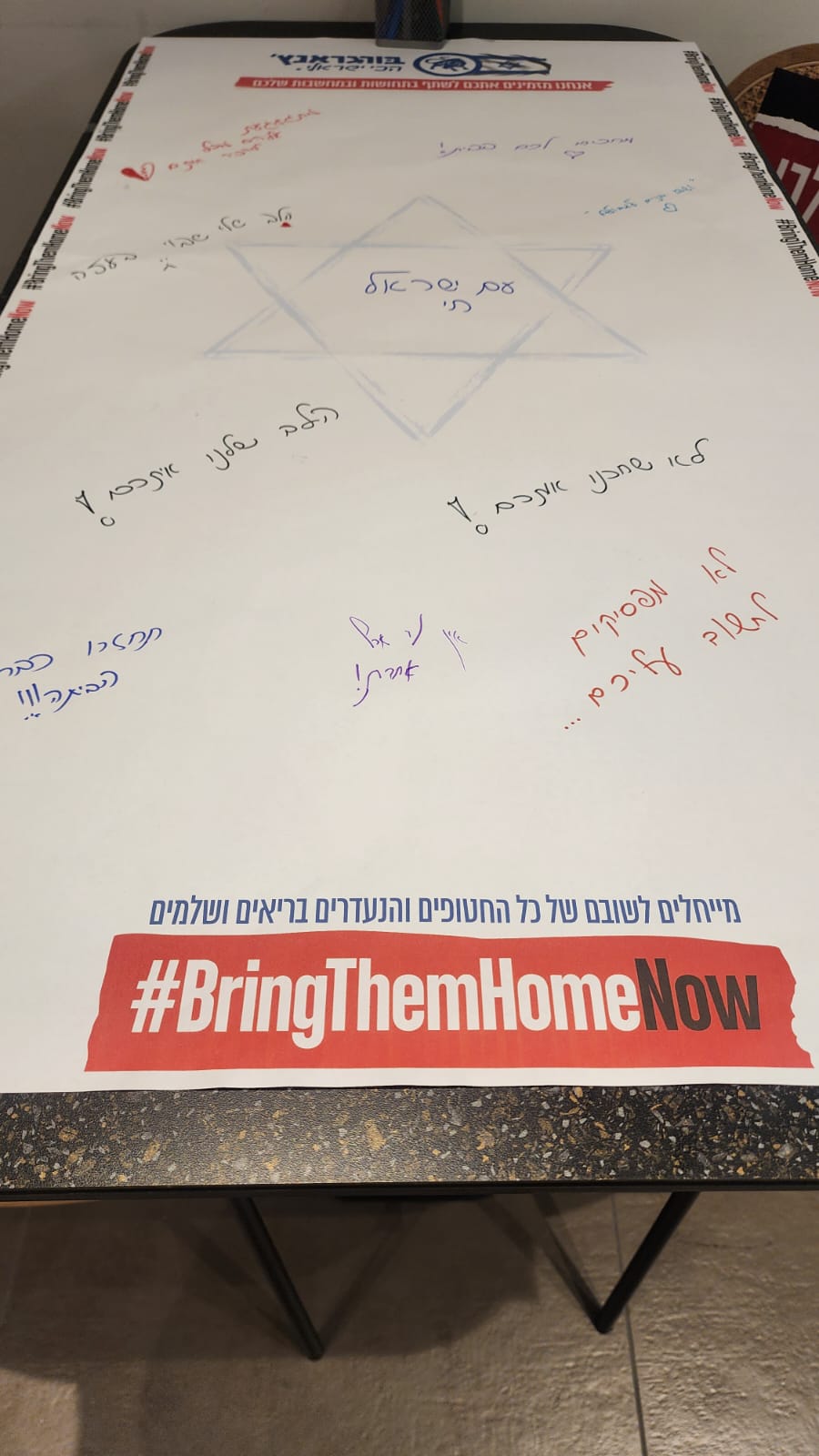 על גבי השולחן מונח משטח ייעודי עליו יכולים הלקוחות והמבקרים לכתוב, לצייר ולשתף בתחושות ובמסרים אישיים לחטופים. עמדות המחווה עומדות בסניפים השונים של הרשת ברחבי הארץ.