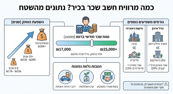 - חשב שכר בכיר / מנהל מחלקת שכר: 16,000 ש"ח עד 25,000 ש"ח ומעלה.