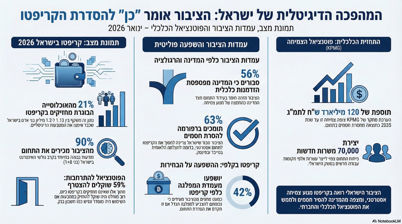 הקמפיין מבוסס מחקר שמצא כי רפורמת קריפטו תוסיף 70 אלף משרות ו-120 מיליארד שקלים לתמ"ג. סקר שנחשף באירוע הצביע על דרישה ציבורית רחבה לאימוץ והסרת חסמים בתחום, לפי הסקר כ-1.5 מיליון ישראלים מחזיקים קריפטו (אחד מתוך כל חמישה ישראלים בגיל הבגרות), ו-42% מהישראלים העידו כי אג'נדה להסדרת התחום תשפיע על ההצבעה בקלפי.
