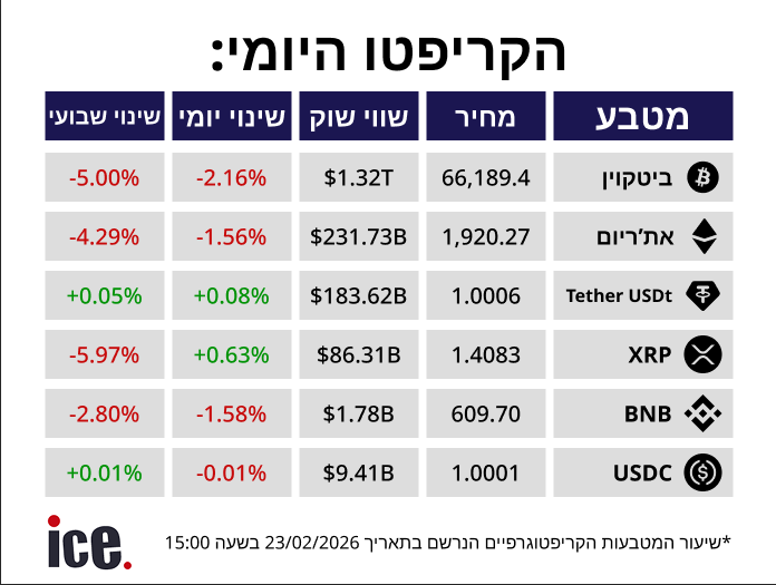 הקריפטו היומי: שוק מטבעות הקריפטו רושם מגמה מעורבת. מטבע הביטקוין הלוא הוא החזק בשוק רושם את השינוי השלילי ביותר בשוק עם ירידה של 2.16% | הסיכום המלא