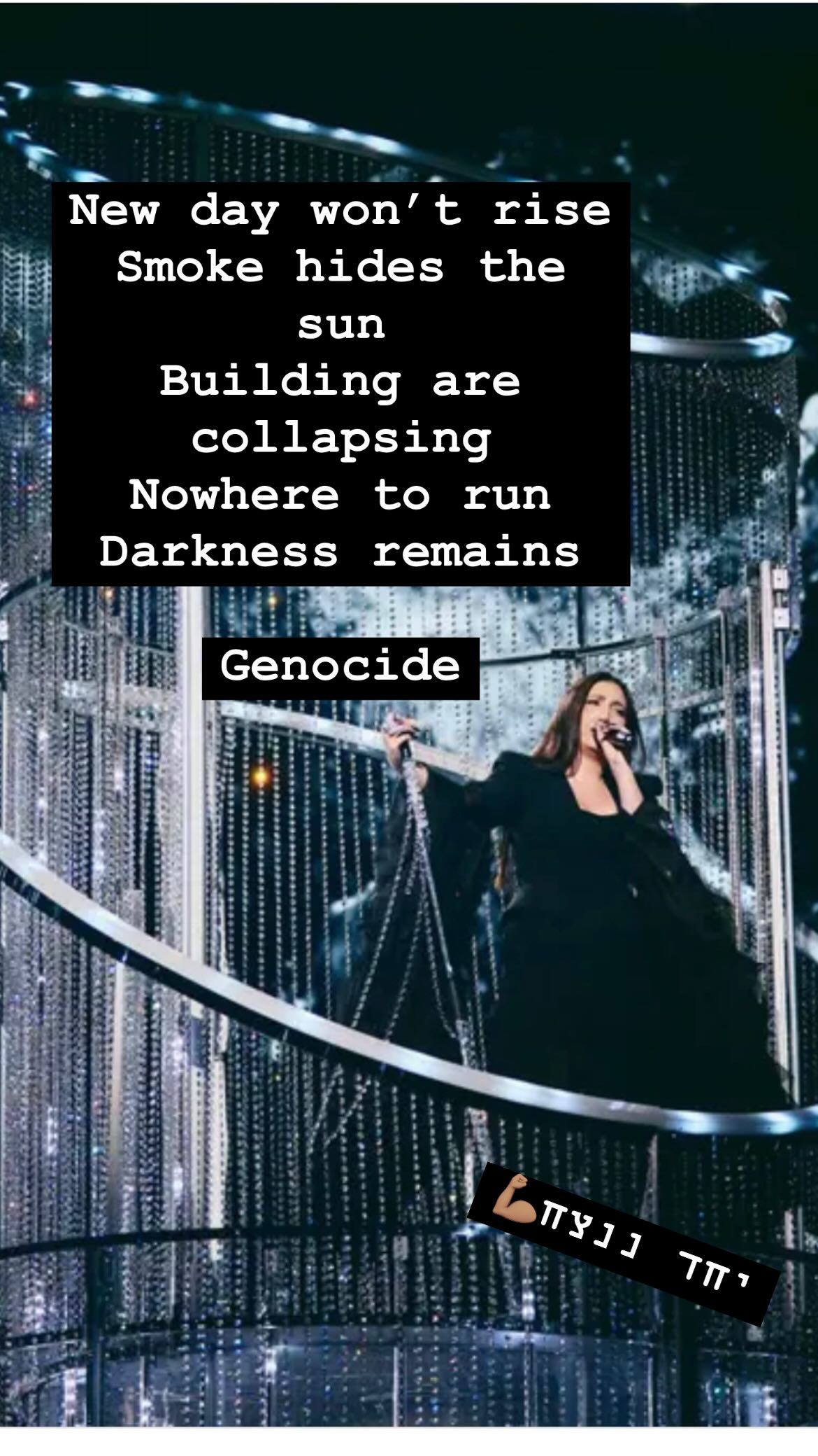 כזכור, על רקע תמונה של רפאל על במת האירוויזיון, כתבה גפן באנגלית: "יום חדש לא יפציע. עשן מסתיר את השמש. בניינים קורסים, אין לאן לברוח. החושך נשאר. רצח עם". גפן, הידועה בעמדותיה הפוליטיות הביקורתיות, הוסיפה בציניות בעברית: "יחד ננצח".