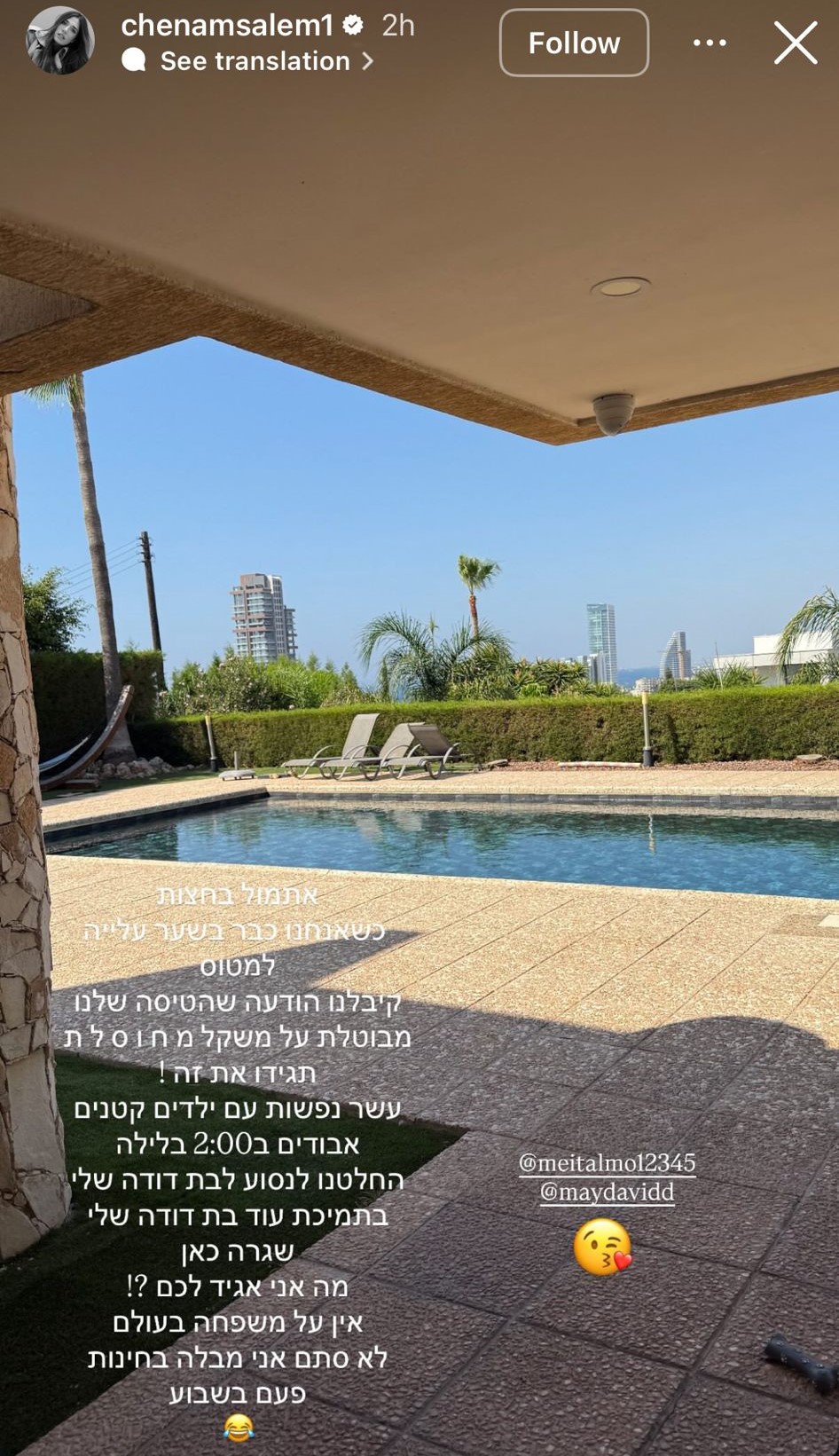 קרדיט: צילום מסך מחשבון האינסטגרם chenamsalem1@