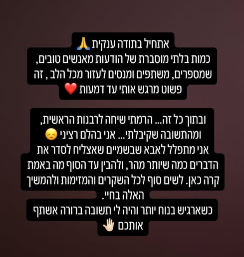 "הרמתי שיחה לרבנות הראשית, ומהתשובה שקיבלתי אני בהלם רציני", הוא רושם. "אני מתפלל לאבא שבשמיים שאצליח לסדר את הדברים כמה שיותר מהר, ולהבין עד הסוף מה באמת קרה כאן. לשים סוף לכל השקרים והמזימות ולהמשיך הלאה בחיי".