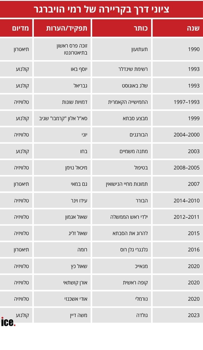 מהצחוק המתגלגל של "מבצע סבתא" ועד לפצעים החשופים של "בטיפול", רמי הויברגר חי ושיחק את הניגודים שמרכיבים את כולנו. סיפורו אינו רק סיכום קריירה, אלא סיפורה של הישראליות עצמה