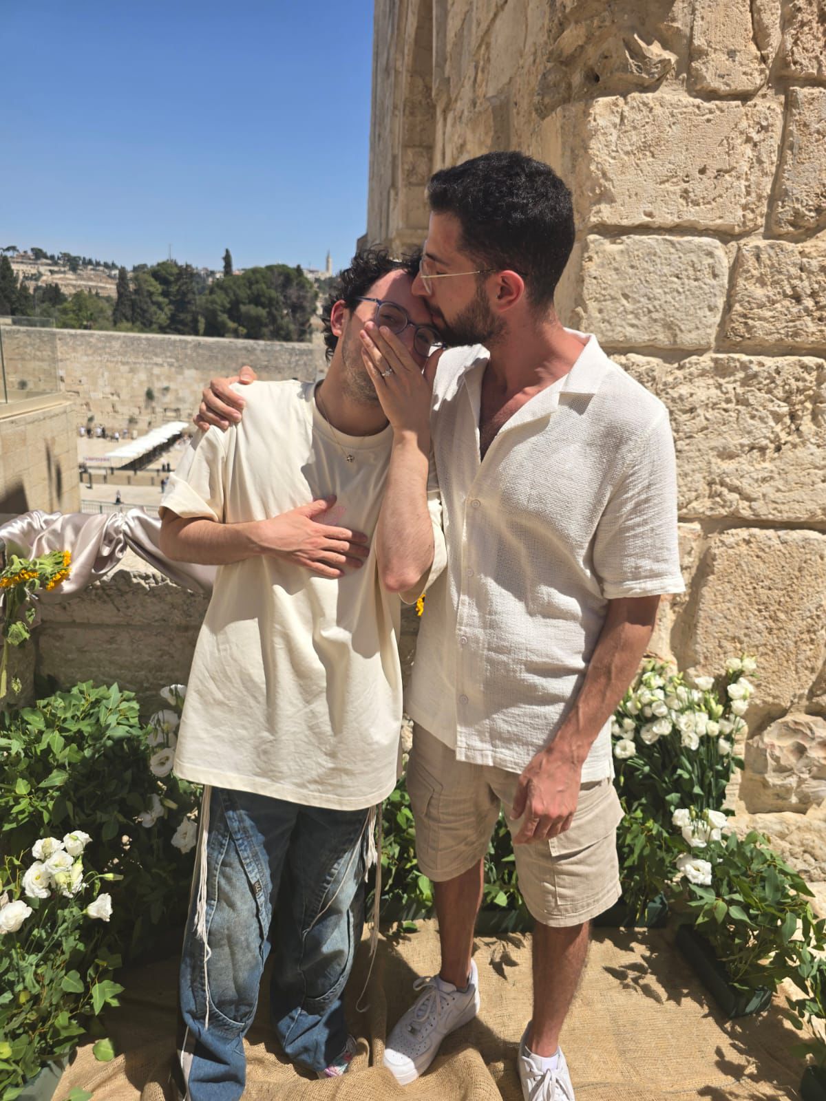 שחר טבוך מקבל הצעת נישואין מבן זוגו בכותל (צילום: יח"צ)