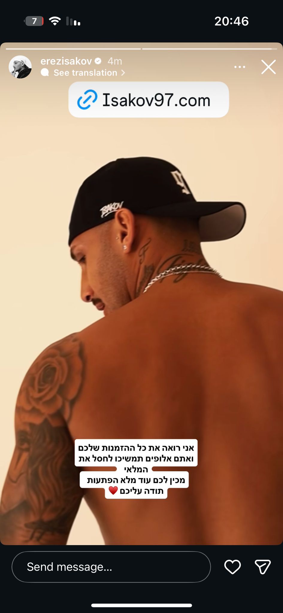 אגב מה שבאמת מפתיע בצעד של איסקוב הוא הסכום ממנו נפרדים לו המעוניינים לרכוש את הכובע שלו - 219 שקל. באתר החדש בו מוכר איסקוב את הכובע המזוהה איתו נכתב על החזון שמאחורי המותג: "יש רגעים שבהם אתה לא צריך להסביר מי אתה. אתה פשוט נכנס לחדר והכול ברור. זה מה ש־ISAKOV מייצג. מותג שנולד מתוך הרצון לייצר משהו אחר. לא כדי למשוך תשומת לב, אלא כדי לבנות נוכחות. קו נקי, חד, עם אמירה שקטה שמורגשת בלי מאמץ".