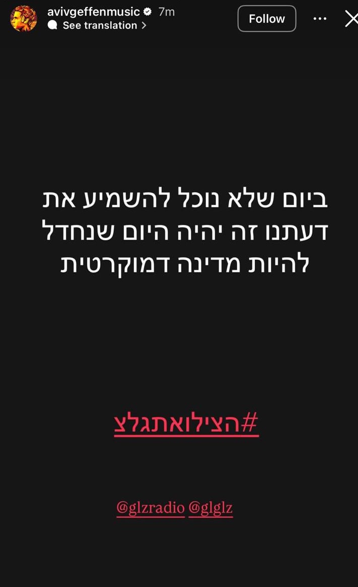 הזמר המפורסם התבטא נגד החלטת שר הביטחון ישראל כ"ץ לסגור את תחנת הרדיו גל"צ: "ביום שלא נוכל להשמיע את דעתנו, זה יהיה היום שנחדל להיות מדינה דמוקרטית"