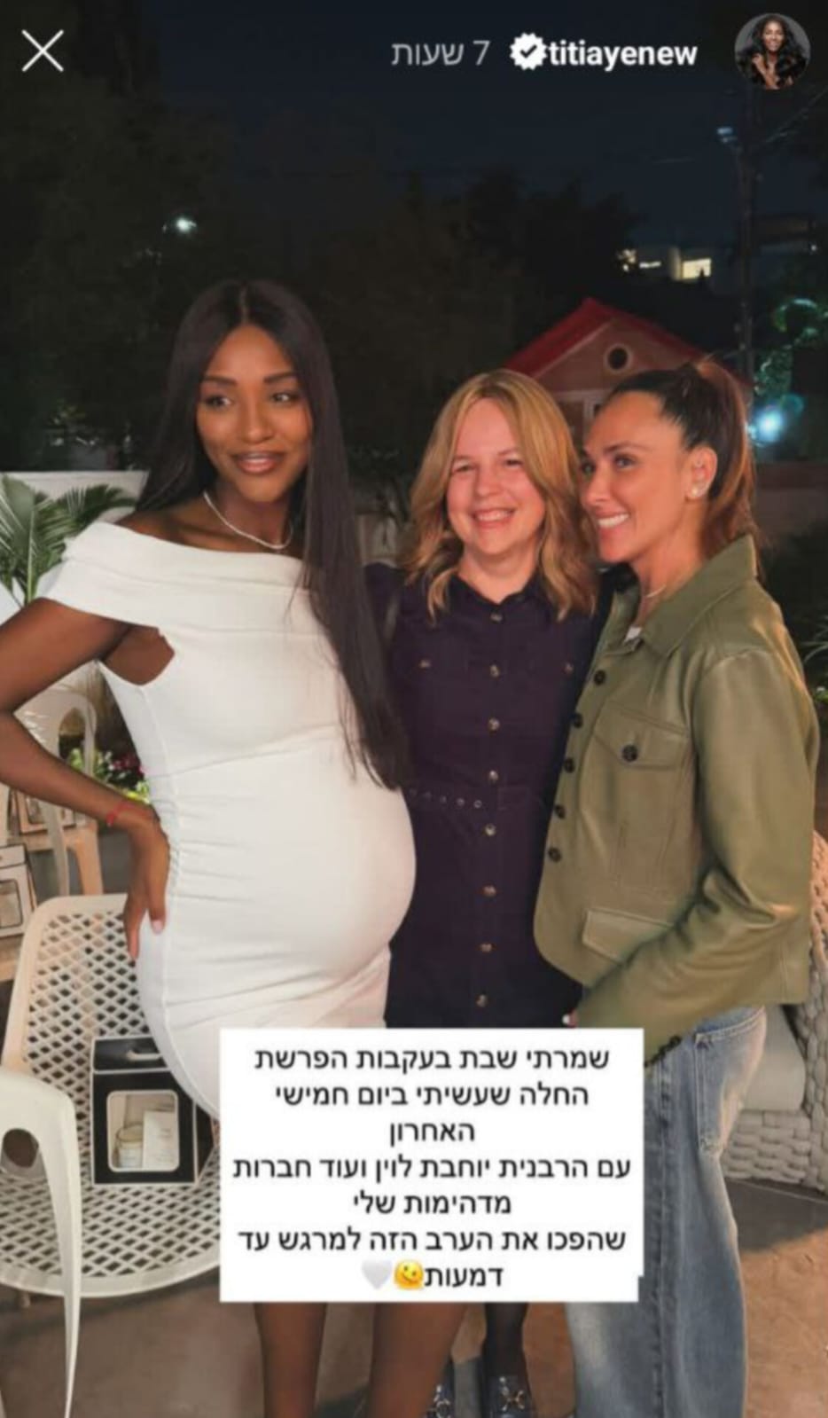 בסטורי שפרסמה בחשבון האינסטגרם שלה, טיטי איינאו חשפה וידוי אישי: "שמרתי לראשונה שבת בעקבות הפרשת החלה שעשיתי ביום חמישי האחרון עם הרבנית יוכבד לוין ועוד חברות מדהימות שלי שהפכו את הערב הזה למרגש עד דמעות".