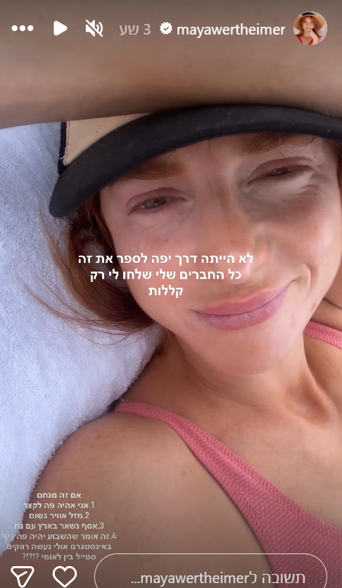המשפיענית והשחקנית מאיה ורטהיימר סיפרה לקהל העוקבים שלה כי היא נסעה לתאילנד לצורכי עבודה ובכך היא הצליח לעורר את קנאתם של חבריה הקרובים: "לא הייתה דרך יפה לספר את זה. כל החברים שלי שלחו לי רק קללות"