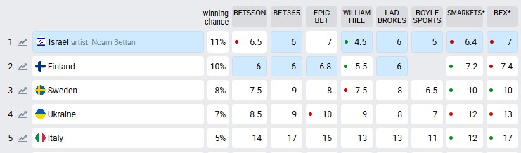 זהו המצב בסוכנויות ההימורים כרגע ברחבי אירופה לזכייה בתחרות: