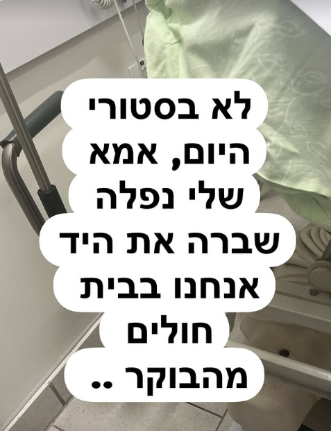 דבריו של יפרח מגיעים בעיצומה של תקופה לא פשוטה עבורו. אתמול, הוא שיתף כי בילה בבית חולים מהבוקר. "לא בסטורי היום, אמא שלי נפלה ושברה את היד", הוא הסביר.