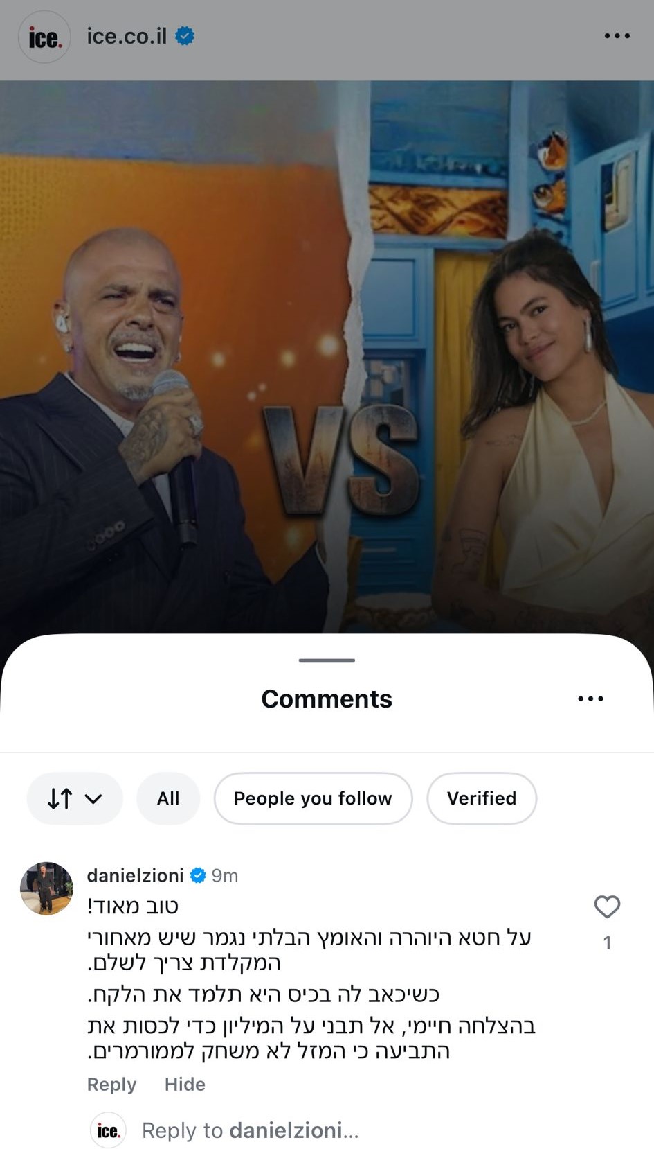 "על חטא היוהרה והאומץ הבלתי נגמר שיש מאחורי המקלדת צריך לשלם", המשיך וכתב ציוני. "כשיכאב לה בכיס היא תלמד את הלקח". הוא המשיך ואיחל לה לא לנצח בתוכנית: "בהצלחה חיימי, אל תבני על המיליון כדי לכסות את התביעה כי המזל לא משחק לממורמרים".