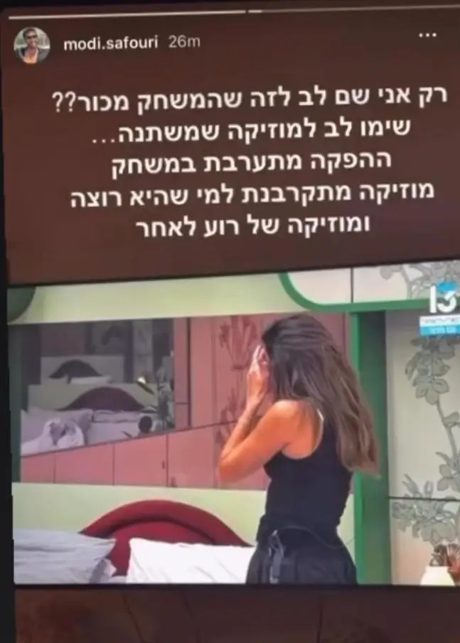 "רק אני שם לב לזה שהמשחק מכור??", כתב. "שימו לב למוזיקה שמשתנה, ההפקה מתערבת במשחק, מוזיקה מתקרבנת למי שהיא רוצה, ומוזיקה של רוע לאחר", המשיך ותקף. למילים האלו הוא צירף תמונת גב של האקסית, גל, מתוך בית האח הגדול.