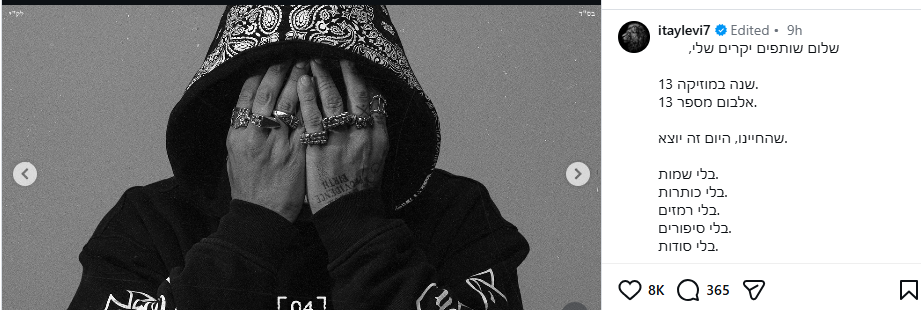 בפוסט שהעלה סיפר בהתרגשות: "13 שנה במוזיקה - אלבום מספר 13. שהחיינו, היום זה יוצא. בלי שמות, בלי כותרות, בלי רמזים, בלי סיפורים, בלי סודות. רק מוזיקה - רק אמת. תודה לאחים שלי, על הדרך, על המילים, על הלחנים ובמיוחד על הלב", כתב.