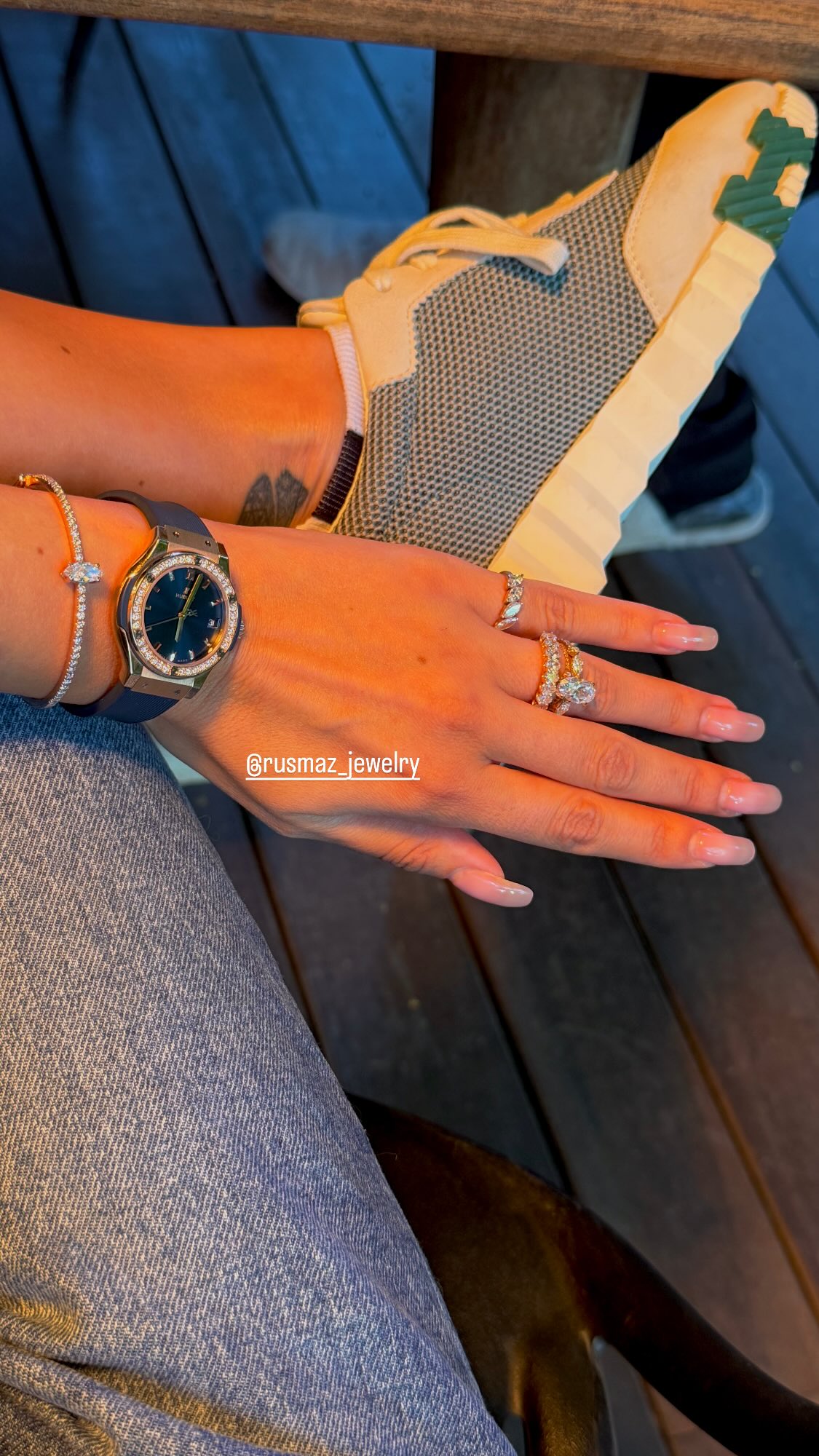 הדוגמנית רוסלנה רודינה (37) משתפת בסטורי שלה מגוון תכשיטים על ידה מהקולקצhיה של המותג "רוסמאס" שהקימה ב-2023. רודינה משמשת כפרזנטורית עבור המותג, שנוסד מתוך בית המלאכה 'אלמז תכשיטים' שמתמחה בייצור ועיצוב תכשיטי זהב, יהלומים ואבני חן.