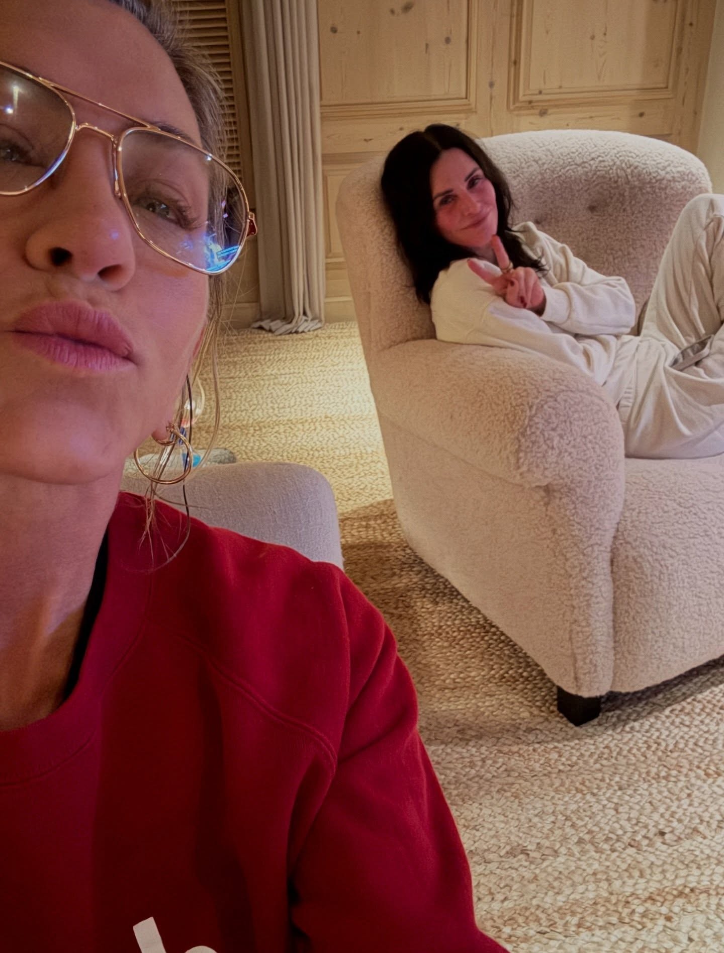 אניסטון העלתה פוסט עם 15 תמונות כשביניהן היה ניתן למצוא סלפי מתוק במיוחד עם שותפתה לסדרה "חברים", קורטני קוקס, וכן עם החבר ג'ים קרטיס שאותו חשפה לראשונה לא לפני הרבה זמן. כמו כן היא שיתפה גם תמונות עם חברות וחברים מאירועים שונים.