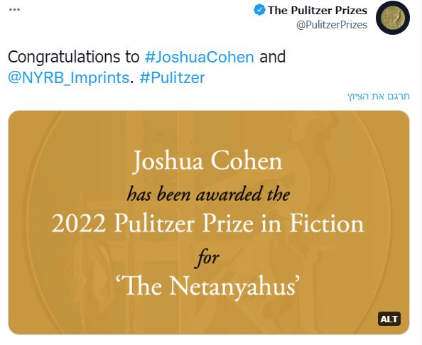 פרס פוליצר יוקרתי לסופר היהודי-אמריקאי ג'ושוע כהן שזכה בו על ספרו "הנתניהוז", או בשמו המלא: "הנתניהוז: אפיזודה שולית ובסופו של דבר אף זניחה בתולדות משפחה מפורסמת מאוד". מדובר בספר בדיוני שמערבב אירועים אמיתיים מול אירועים דמיוניים בתקופת משפחת נתניהו בארה"ב.