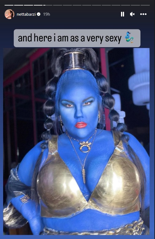 בסטורי אחר, בו תמונתה מחופשת ליסמין מאלאדין, כתבה "פה אני יסמין ומאוד מאוד שווה. לקח לי שנים לקבל ולאהוב את עצמי, ולהבין שמישהו רוצה שאני אפסיד את כל הכיף סתם כי לא נוח לו עם עצמו. מחלה נפוצה מאוד".