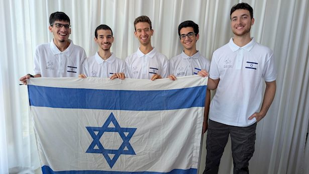 נבחרת מדעי המחשב (מימין לשמאל): עידן רוזנצוויג, יואב שמאי, אופק שוחט, דניאל ובר ועידו כפיר