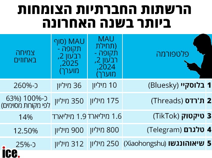 הרשת החברתית בלוסקיי מזנקת, ת'רדס מכפילה משתמשים וטיקטוק ממשיכה להתרחב, בזמן ש-X נעלמת מרשימת הצמיחה. מה גרם למשתמשים לנטוש, איזו פלטפורמה הפכה למקלט עבור המשתמשים – ומי המרוויחה הגדולה מהכאוס של מאסק?