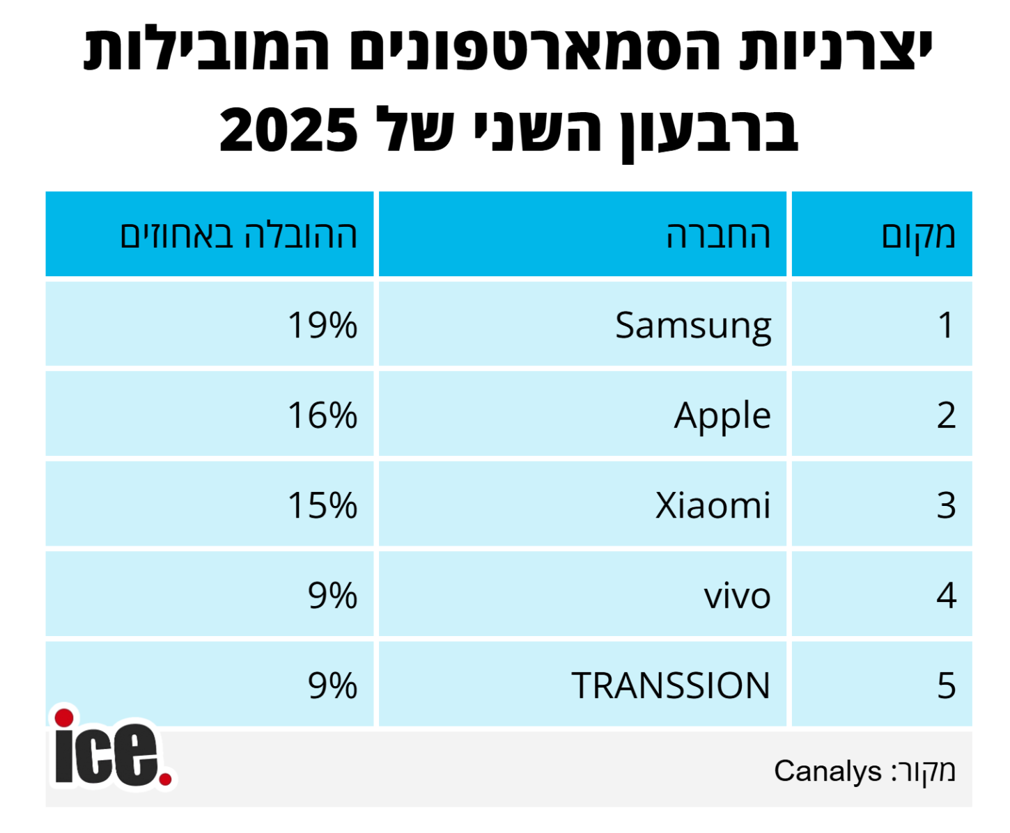 עם זאת, התחזקות אי-הוודאות הכלכלית הגלובלית, ירידת הביקוש להחלפת מכשירים ישנים והשלכות גיאו-פוליטיות בארה"ב ובישראל יוצרים שוק שמאופיין בזהירות ובתכנון מחושב מצד היצרניות. על רקע זה, בדקנו מי הן חמש החברות המובילות במכירות בשוק העולמי ברבעון השני.
