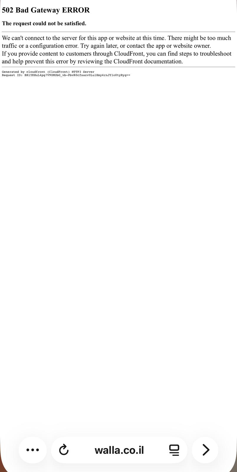 הודעת השגיאה שמופיעה לכגולשים שמנסים להכנס לאתר "וואלה".