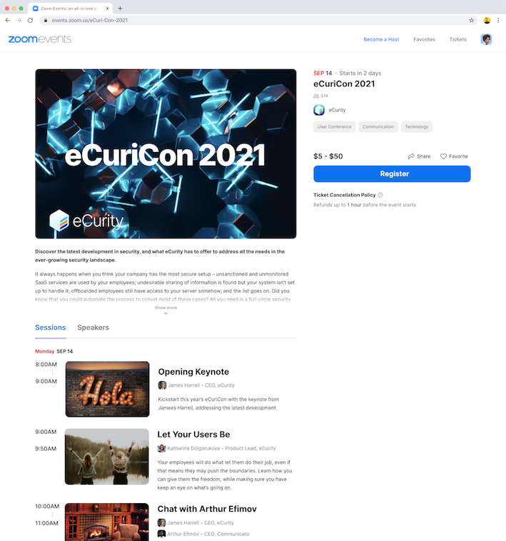 חברת זום מכריזה על ה-Zoom Events, פלטפורמת All in one שתסייע לכל אחד להפיק ולנהל אירועים, כנסים וחוויות וירטואליות. Zoom Events שתהיה זמינה כבר הקיץ, משלבת את הכוח והאמינות של פגישות הזום המוכרות, עם ובינרי הווידאו של זום והצ׳אט המובנה, לפתרון שלם אחד המיועד למארגני אירועים מכל סוג, כשהוא מאפשר להם למכור כרטיסים ולערוך אירועים חיים.