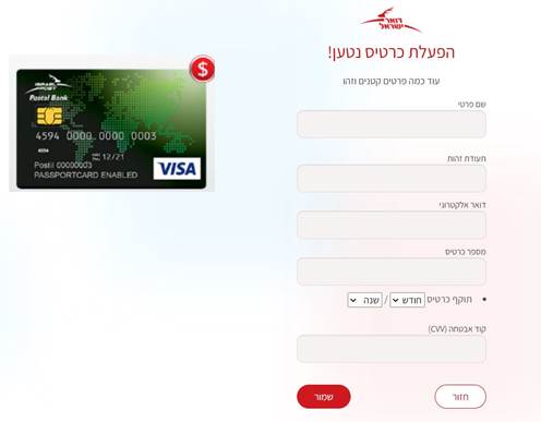 מייל זדוני מתחזה לדואר ישראל ומבקש להפעיל את הכרטיס הנטען
